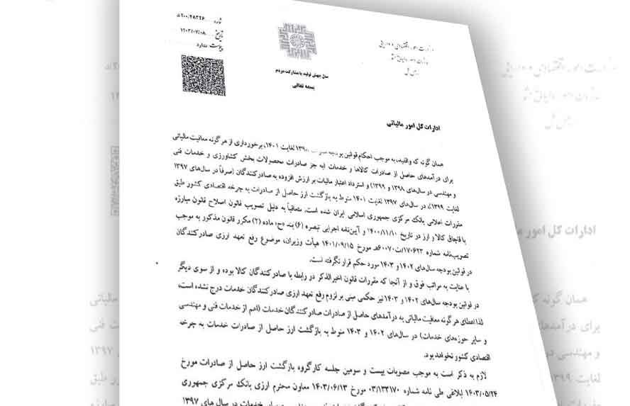 به گزارش آسیانیوز ایران؛ سازمان امور مالیاتی کشور با صدور بخشنامه‌ای جدید، شرایط جدیدی برای رفع تعهد ارزی و برخورداری از نرخ صفر مالیاتی برای درآمدهای حاصل از صادرات اعلام کرد. بر اساس این بخشنامه، صادرات خدمات فنی و مهندسی و سایر خدمات در سال‌های ۱۴۰۲ و ۱۴۰۳ از الزام به رفع تعهد ارزی معاف شده‌اند. این اقدام در راستای حمایت از فعالان بخش خدمات و تسهیل صادرات در این حوزه انجام شده است.