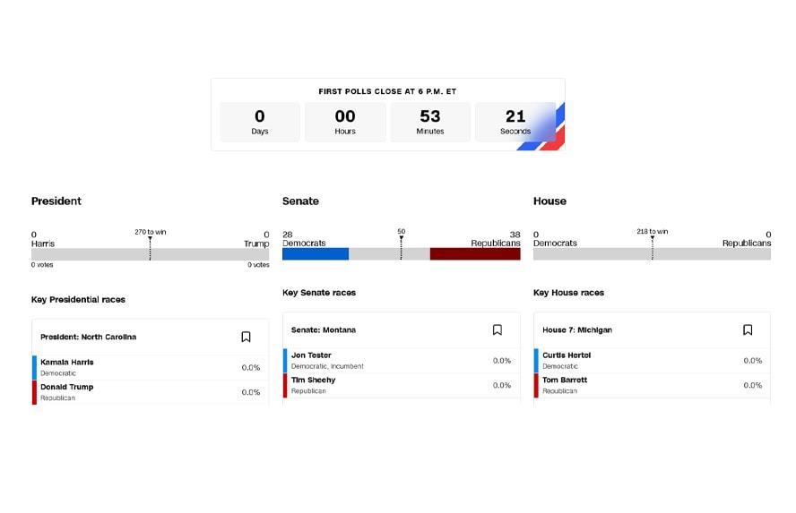 در این دوره از انتخابات، رقابت در ایالت‌های کلیدی مانند کارولینای شمالی، میشیگان و مونتانا نیز بسیار داغ است. در کارولینای شمالی، هریس و ترامپ رقابت تنگاتنگی دارند و در مونتانا، جان تستر (دموکرات) و تیم شیهی (جمهوری‌خواه) در انتخابات سنا به رقابت می‌پردازند. همچنین، در حوزه ۷ میشیگان، کرتس هرتل از حزب دموکرات و تام بارت از حزب جمهوری‌خواه برای ورود به مجلس نمایندگان مبارزه می‌کنند.