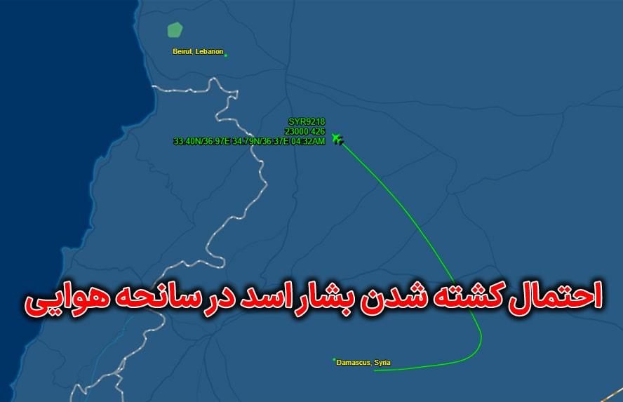 به گزارش آسیانیوز ایران ؛ خبرگزاری رویترز به نقل از دو منبع در سوریه اعلام کرد که احتمال زیادی وجود دارد که بشار اسد، رئیسجمهور سوریه، در یک سانحه هوایی کشته شده باشد. طبق این گزارش، هواپیمایی که گمان میرود حامل اسد بوده است، از فرودگاه دمشق به سمت ساحل پرواز کرده اما لحظاتی پس از بلند شدن، تغییر مسیر داده و به سمت جنوب بازگشته است.