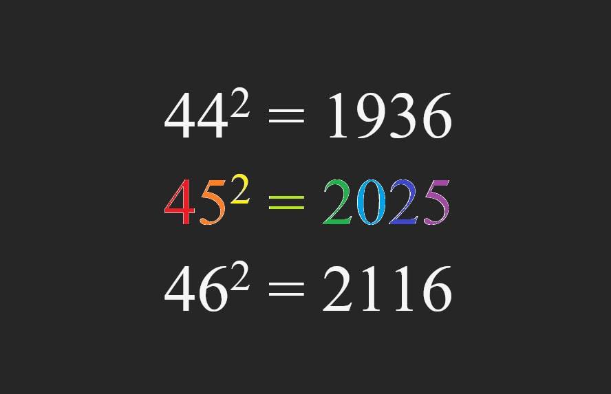 آخرین سال مربع کامل در قرن بیستم، ۱۹۳۶ بود که برابر با حاصل ضرب ۴۴ در خودش است. اکنون، پس از ۸۹ سال، ۲۰۲۵ بهعنوان اولین سال مربع کامل در قرن بیستویکم شناخته میشود.