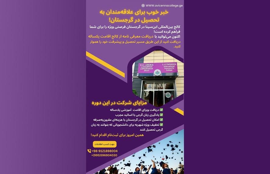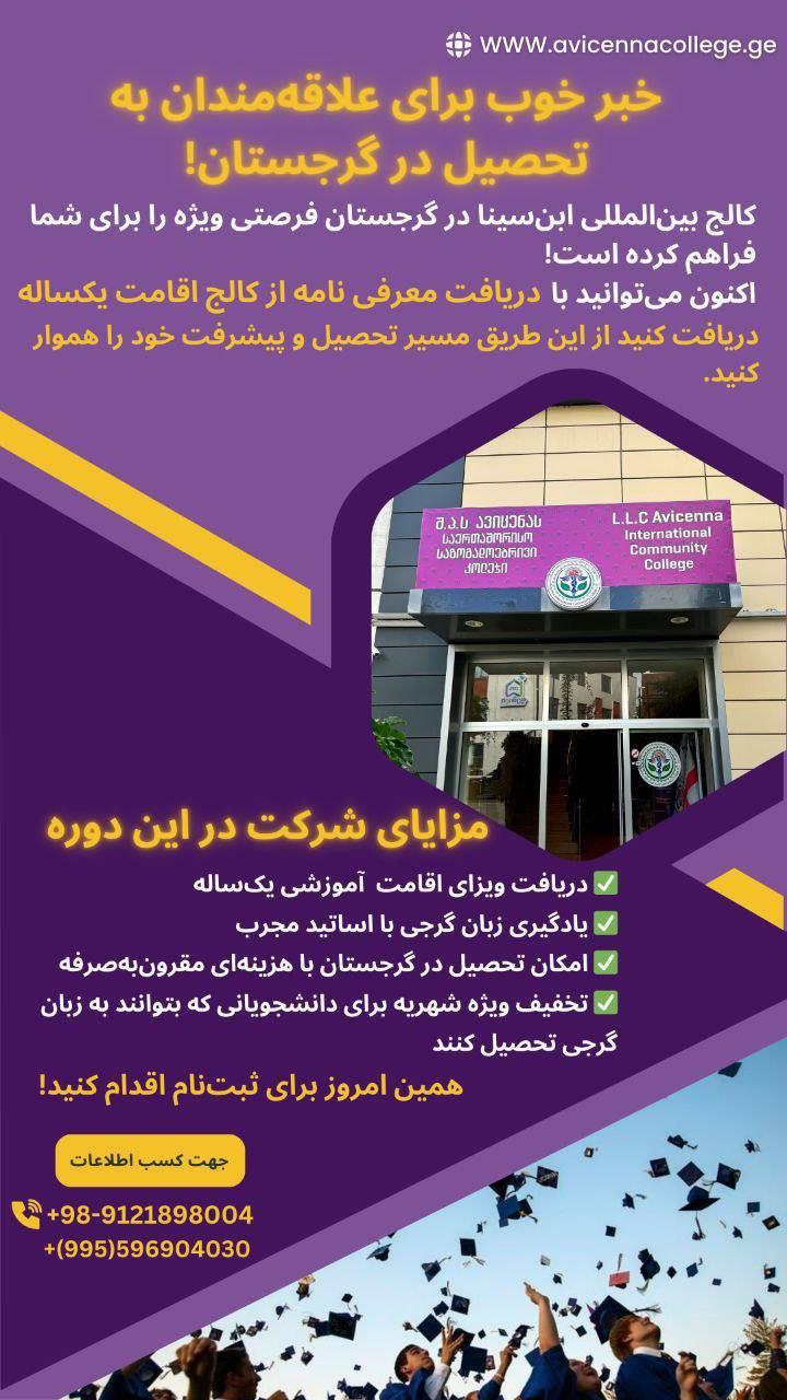 به گزارش آسیانیوز ایران ؛ به نقل از روابط عمومی کالج بینالمللی ابنسینا در گرجستان، این کالج فرصتی ویژه را برای شما فراهم کرده است. اکنون میتوانید با دریافت معرفینامه از کالج بینالمللی ابنسینا در گرجستان اقامت یکساله دریافت کنید و از این طریق مسیر تحصیل و پیشرفت خود را هموار کنید.
