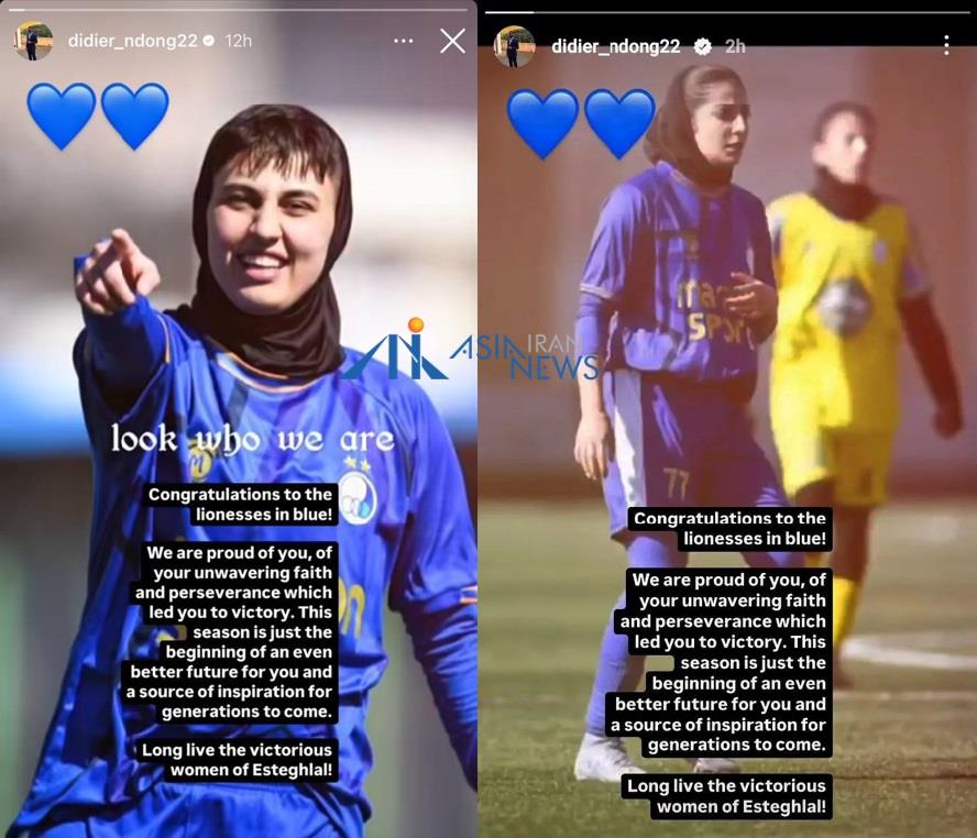 تیم زنان استقلال مقتدرانه به لیگ یک زنان صعود کرد. این موضوع با واکنش دیدیه اندونگ هافبک باشگاه استقلال هم رو به رو شد. او نوشت: «ما به شما افتخار میکنیم. به ایمان و استقامت تزلزلناپذیری که شما را به پیروزی رساند. این فصل آغاز آیندهای بهتر برای شما و منبع الهام برای نسلهای آینده است. زندهباد زنان پیروز استقلال.» اندونگ در حالی به تیم زنان باشگاه استقلال تبریک گفت که هیچ یک از بازیکنان ایرانی باشگاه این کار را نکردند تا اینگونه فرق بین بازیکن حرفه ای با دیگران حتی در رفتار مشخص شود. دیدیه اندونگ در این استوری نوشت: تبریک به شما شیرزنان آبیپوش! ما به شما افتخار میکنیم، به ایمان و استقامت تزلزل ناپذیر شما که شما را به پیروزی رساند. این فصل آغاز آیندهای بهتر برای شما و منبع الهام برای نسل های آینده است. زنده باد زنان پیروز استقلال...
