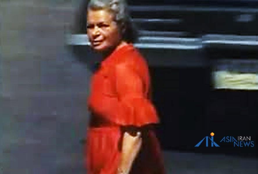 تصویرهای کوتاهی از بانوی میدان فردوسی در دست هست. آن تصویرها را میتوان در فیلم مستند «تهران امروز» ساختهی خسرو سینایی دید. فیلم سینایی تهرانِ سال 1356 را نشان میدهد. در بخشی از فیلم، بانوی سرخپوش دیده میشود که اندکی شتابان پهنای خیابان فردوسی را طی میکند. صدایی روی این بخش از فیلم هست که چنین میگوید: «یه روز اومد، یه روز هم رفت. دلم میخواد یه بار دیگه ببینمش. ولی افسوس که تکرار نمیشه… راستی، چی شد؟ کجا رفت؟».