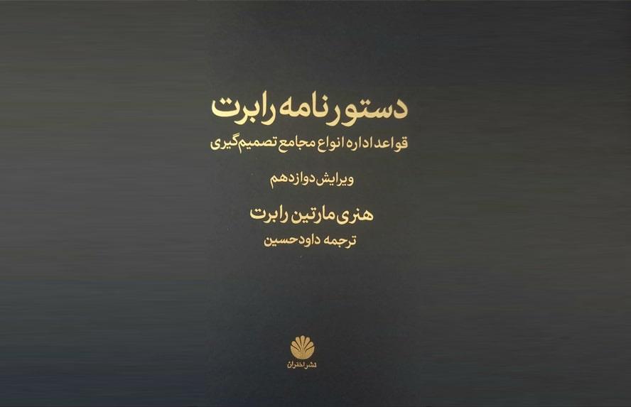 کتاب «دستورنامه رابرت: قواعد ادارهٔ انواع مجامع تصمیمگیری» نوشته هنری مارتین رابرت با ترجمه داود حسین را در ۷۰۸ صفحه و با قیمت ۸۴۰۰۰۰ تومان انتشارات اختران رهسپار بازار کتاب کرده است.