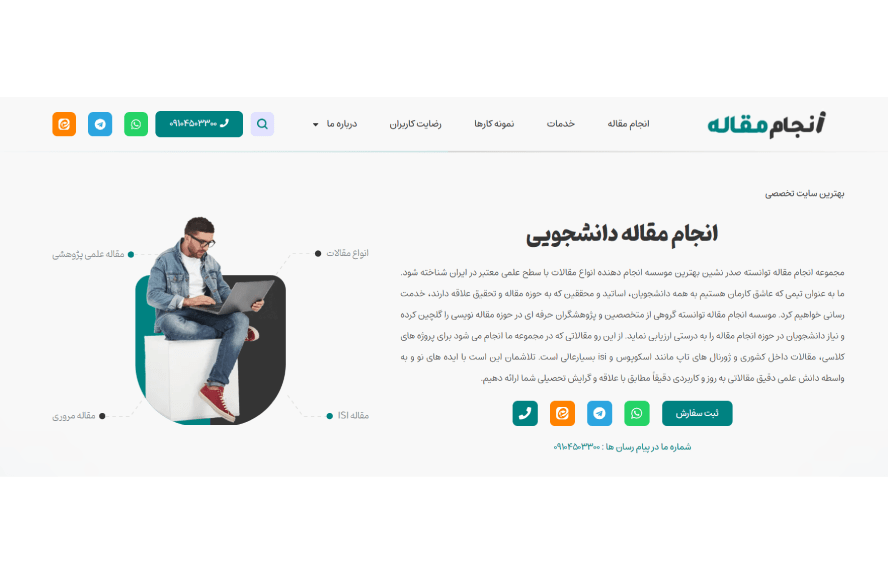 در میان مجموعه های مختلفی که مدعی ارائه خدمات نگارش مقاله هستند، سایت «انجام مقاله» با اتکا به تیمي متخصص و مجرب، توانسته جایگاهی متمایز در این حوزه به دست آورد. نگارش یک مقاله علمی معتبر، فرایندی پیچیده و دقیق بوده که نیازمند تسلط بر دانش تخصصی، آشنایی با استانداردهای پژوهشی و همچنین مهارت در ساختاردهی محتوای علمی است. این مجموعه با شناخت کامل از استاندارد های ملی و بین المللی، مقالاتی را که هم از نظر علمی غنی هستند و هم از لحاظ ساختار نگارشی، برای مجلات معتبر داخلی و خارجی دقیق و قابل قبول هستند، تهیه می کند