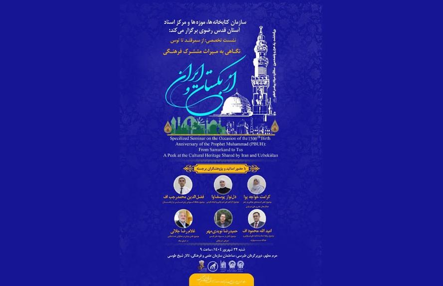 این نشست بهمناسبت گرامیداشت یکهزار و پانصدمین میلاد پیامبر اکرم (ص) با حضور جمعی از مسئولان، کارشناسان و محققان آستان قدس رضوی، اعضای هیئت اعزامی از بنیاد بینالمللی امیر علیشیر نوایی ازبکستان و همچنین استادان و پژوهشگران علاقهمند، شنبه، ۲۲ شهریورماه ۱۴۰۴، از ساعت ۹ صبح، در تالار شیخ طوسی ساختمان سازمان علمی و فرهنگی آستان قدس رضوی واقع در دوربرگردان طبرسی حرم مطهر رضوی، اجرا میشود.