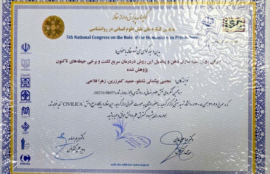 - مستندات پژوهشی: آنها به انتشار مقالات در «ژورنال APA» و «مجله توانبخشی دانشگاه شهید بهشتی» و همچنین ارائه نتایج تحقیقات در نشستهای سالانه انجمن APA (بین سالهای ۲۰۲۱ تا ۲۰۲۴) استناد کردهاند. همچنین ذکر شده که بیش از ۱۰ پایاننامه دانشگاهی در حوزههای لکنت، اعتیاد، فوبیا و افسردگی با هدایت آنها انجام شده است.