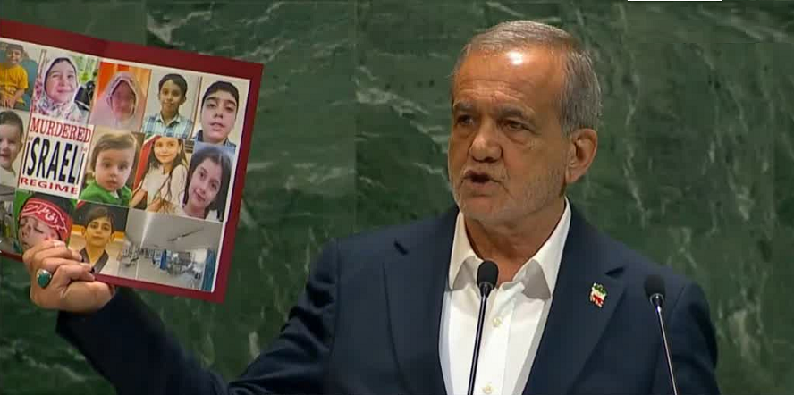 مسعود پزشکیان، رئیس‌جمهور ایران در سخنرانی خود در مجمع عمومی سازمان ملل، با نمایش تصاویر کودکان کشته شده در حملات اخیر جنگ ایران و اسرائیل، به انتقاد از اسرائیل آمریکا پرداخت و با تأکید بر فتوای آیت الله خامنه ای، هرگونه تلاش برای دستیابی به سلاح هسته‌ای را رد کرد و اقدام اخیر اروپا در بازگرداندن قطعنامه‌ها را غیرقانونی خواند.