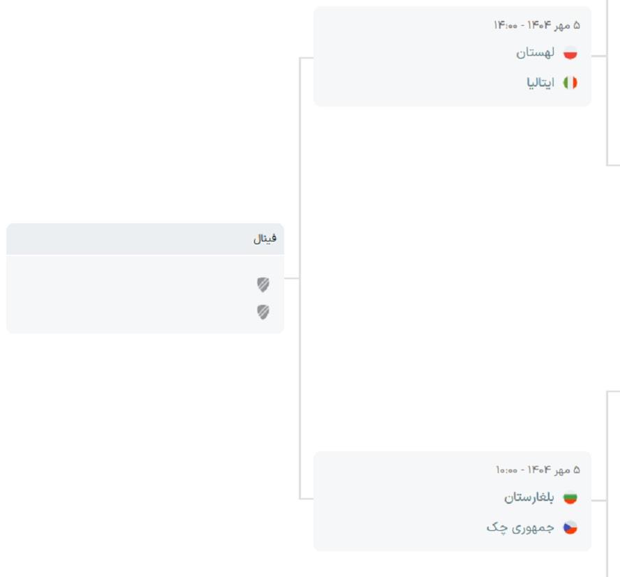 - ایتالیا vs لهستان: شنبه ۵ مهر - ساعت ۱۴:۰۰ به وقت تهران