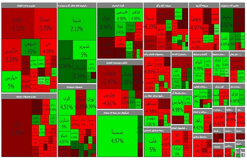 به نقل از اقتصاد نیوز، در معاملات امروز شستا، تاپیکو و نوری نمادهای سبزرنگ تاثیرگذار بر شاخص بودند و وپارس، خودرو و رمپنا بزرگان قرمزرنگ بازار بودند که بیشترین تاثیر منفی را بر شاخص داشتند./