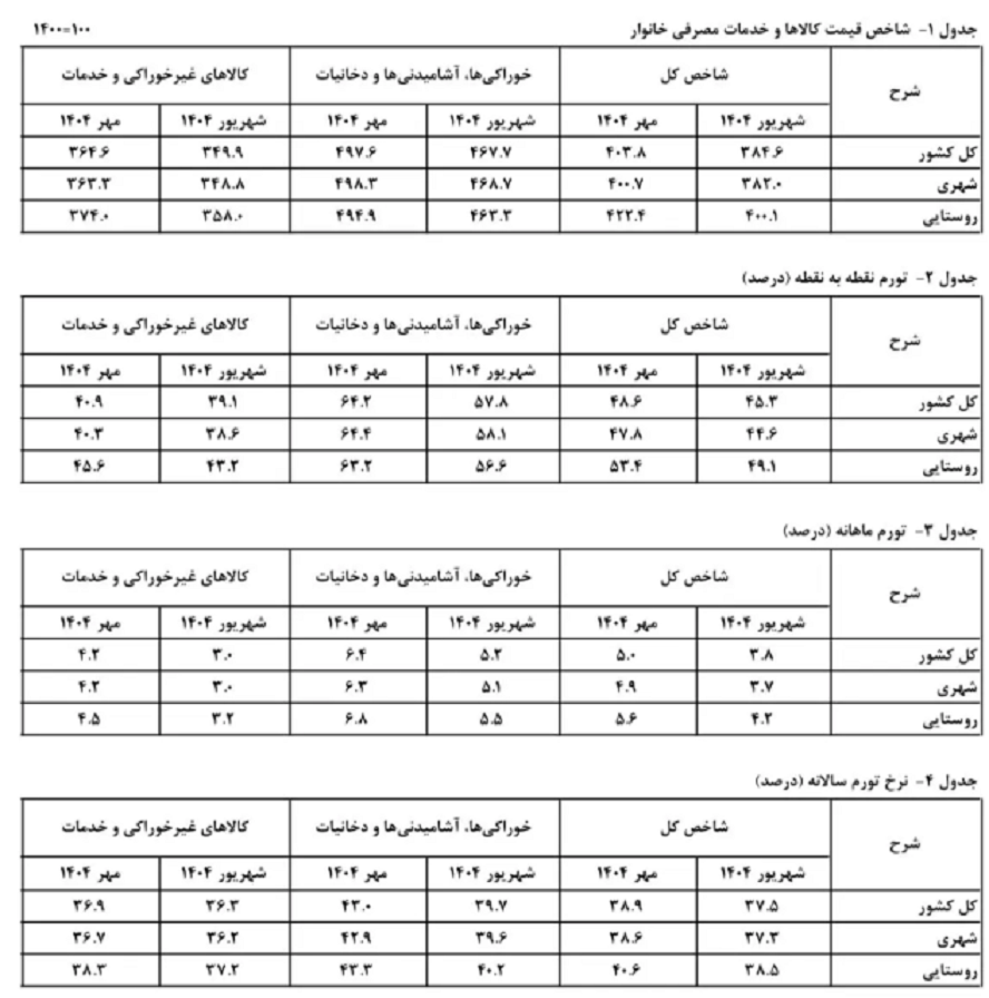 ثبت رکورد ۴۸.۶ درصدی تورم در مهرماه ۱۴۰۴
