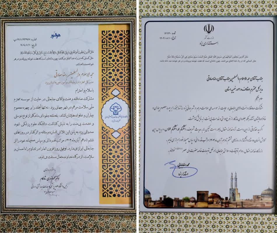 آسیانیوز ایران / یزد ؛ در اقدامی ارزشمند و انساندوستانه، از تلاشها و پشتیبانیهای صادقانهی حجتالاسلام رضا صادقی، مدیرکل اوقاف و امور خیریه استان یزد، در همراهی و همکاری با گروههای جهادی موسسه ملی «مرهم» که بهصورت داوطلبانه به انجام جراحیهای رایگان بیماران دارای شکاف لب و کام در استان پرداختند، با اهدای لوح سپاس از سوی مسئولان استان تجلیل شد.