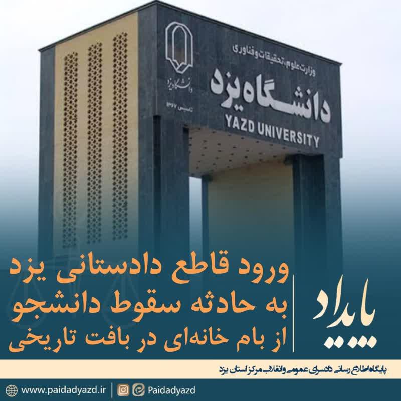 آسیانیوز ایران / یزد ؛ به نقل از پایداد، دادستانی یزد بلافاصله پس از اطلاع، با ورود فوری به پرونده حادثه سقوط یک دانشجوی رشته معماری از بام خانهای تاریخی در محله پنبهکاران، بازپرس ویژهای را جهت رسیدگی به این موضوع تعیین کرد. در همین راستا، رئیس دانشکده هنر و معماری دانشگاه یزد و استاد مربوطه برای ادای توضیحات به دادسرا احضار شدند.