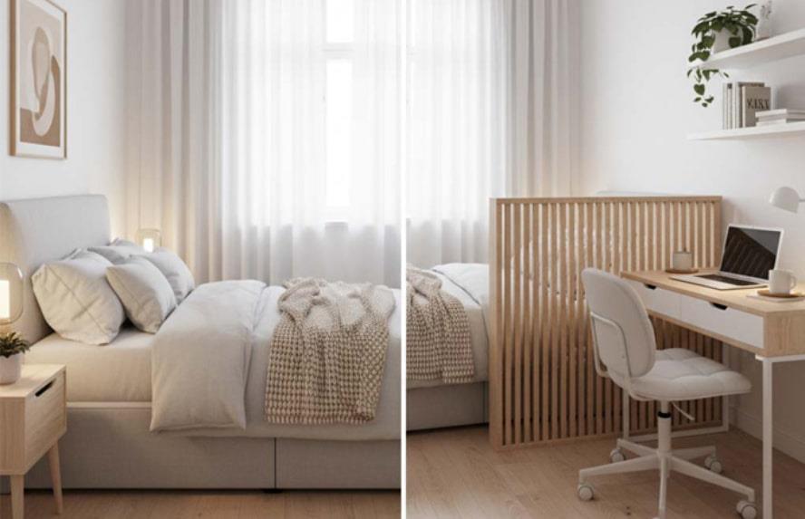 • استفاده از دیوارهای کاذب یا پارتیشن‌ها: استفاده از پارتیشن ها و دیوارهای کاذب کمک میکند تا بدون اشغال فضای زیاد محیطی جداگانه برای کار ایجاد شود. این جداسازی از لحاظ بصری و ذهنی مرز مشخصی بین کار و زندگی به وجود می آورد. شرکت های بازسازی ساختمان می توانند بهترین نوع پارتیشن بندی برای فضاهای کوچک را بر اساس تجربه خود طراحی کنند.