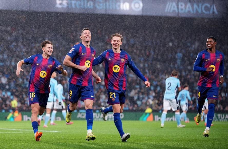 اما شادی بارسا دیری نپایید. تنها یک دقیقه بعد، اشتباه مارکوس رشفورد در میانه میدان منجر به ضدحمله سریع سلتاویگو شد و سرجیو کاریرا با شوتی کاتدار دروازه مارک-آندره تر اشتگن را باز کرد. این بار نوبت لواندوفسکی بود که در دقیقه 37 دوباره قدرت خود را به رخ بکشد. سانتر دقیق رشفورد از جناح راست و ضربه سر بینقص لهستانی، بارسا را بار دیگر پیش انداخت. ورزشگاه بالایدوس شاهد بازی پرحاشیه و پرگلی بود. در دقیقه 43، بورخا ایگلسیاس با بهرهگیری از سانتر فران جوتگلا بازی را برای بار دوم برابر کرد و اضطراب بار دیگر به چهره بازیکنان بارسا بازگشت.