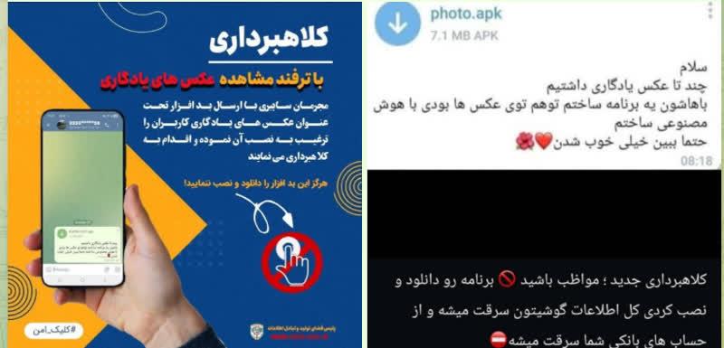 در این روش، افراد سودجو با ارسال پیامهایی تحت عنوان «نمایش تصاویر بهتر»، «تشخیص چهره با هوش مصنوعی»، «بهبود کیفیت عکس» یا عناوین مشابه، کاربران را به نصب یک فایل ناشناس با پسوند APK ترغیب میکنند.