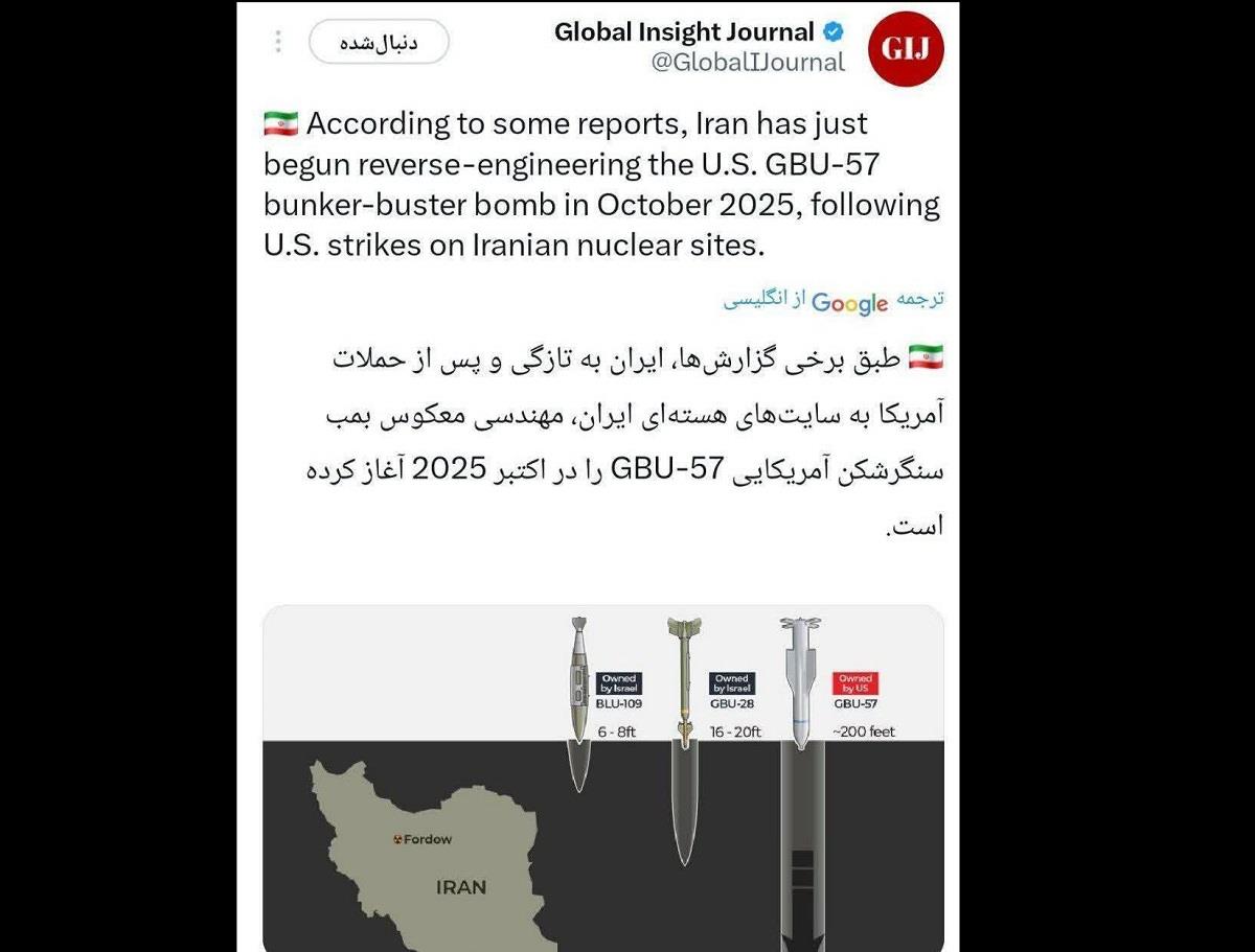گلوبال اینست جورنال: مهندسی معکوس بمب GBU-57 را پس از حملات اکتبر ۲۰۲۵
