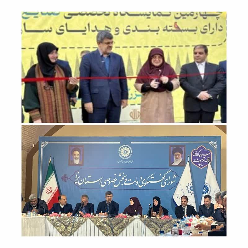 صبح روز یکشنبه ۱۶ آذر، یزد میزبان دو برنامه مهم اقتصادی، فرهنگی و توسعهای بود. در ابتدا چهارمین نمایشگاه تخصصی صنایع دستی دارای بستهبندی و هدایای سازمانی با حضور فاطمه مهاجرانی سخنگوی دولت و مریم جلالی معاون صنایع دستی وزارت میراث فرهنگی در موزه «تار و پود» افتتاح شد. این نمایشگاه با ۳۰ غرفه از برندهای صنایع دستی فاخر که قابلیت ارائه به عنوان هدایای سازمانی دارند، پذیرای علاقهمندان شد.