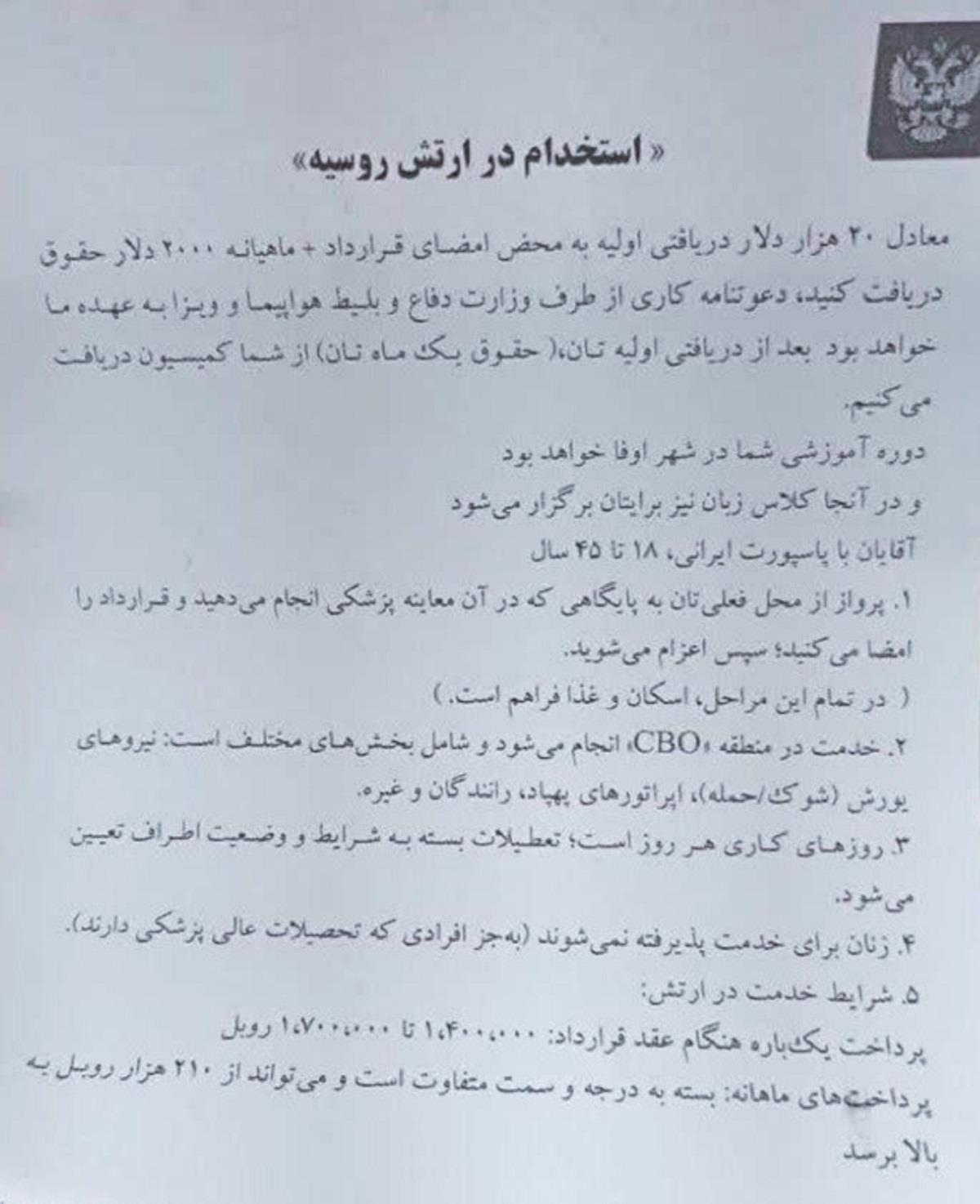 فضای مجازی ایران این روزها شاهد انتشار پیامی نگرانکننده و عجیب است. نامهای که ادعا میکند جوانان ایرانی را برای خدمت در منطقه عملیات ویژه نظامی روسیه استخدام میکند. این نامه که در شبکههای اجتماعی و برخی گروههای پیامرسان دست به دست میشود، وعدههای مالی درخشانی به مردان ۱۸ تا ۴۵ ساله میدهد. ادعایی که به سرعت توجه بسیاری را به خود جلب کرد. اما حالا سفارت روسیه در تهران به طور رسمی و قاطعانه این نامه را تکذیب کرده است. براساس بیانیه رسمی این سفارت، چنین نامهای کاملاً جعلی و دارای ماهیت مجرمانه است. سفارت روسیه تأکید کرده که نه تنها این نامه، بلکه هرگونه نامه مشابه دیگر نیز ارتباطی با نهادهای رسمی روسیه ندارد. این یک عملیات کلاهبرداری سازمانیافته است.