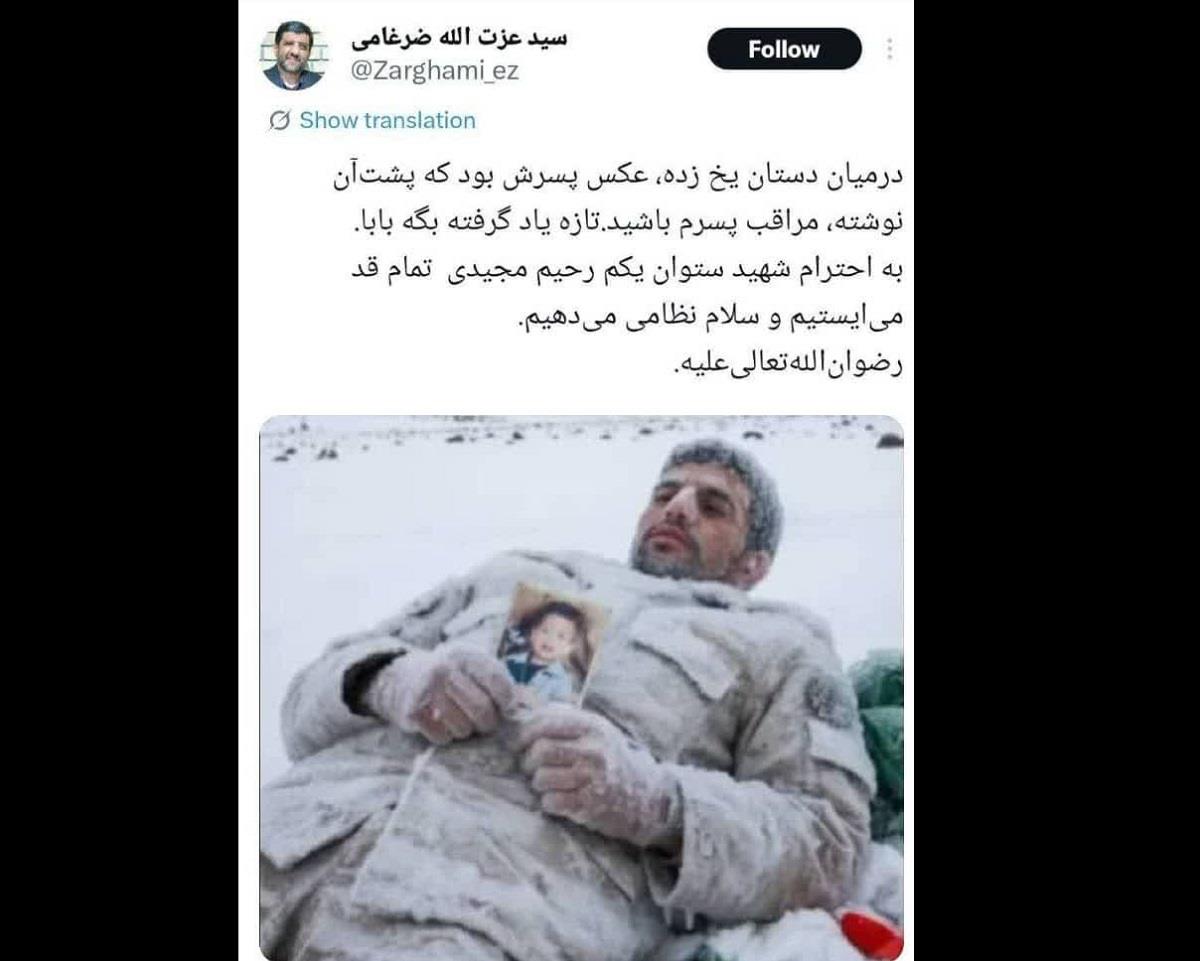زمستان سخت ۱۴۰۴، داستانهای تلخ بسیاری را در گوشه و کنار ایران روایت کرده است. داستانهایی که گاه از مرزهای جغرافیایی فراتر رفته و به قلب جامعه نفوذ میکنند. یکی از این داستانها، مرگ سربازی است که گفته میشود بر اثر سرمازدگی جان باخته است. این حادثه دردناک، به خودی خود میتواند سوژهای برای بررسی مسائل ساختاری باشد. اما آنچه بر التهاب ماجرا افزوده، واکنشهای متفاوت به این رویداد است. از یک سو، مراسم بزرگداشت و ادای احترام به سرباز جانباخته برگزار میشود و از سوی دیگر، صداهایی انتقادی بلند میشود. عزتالله ضرغامی، مدیرعامل سازمان صداوسیما، در توئیتی با اشاره به این حادثه نوشت: «در میان دستان یخزده، عکس پسرش بود که پشت آن نوشته: ‹مراقب پسرم باشید. تازه یاد گرفته یکه پاها.› به احترام شهید ستوان یکم رحیم مجیدی تمامقد میایستیم و سلام نظامی میدهیم.» اما این توئیت با واکنش تند برخی کاربران مواجه شد. آنان معتقدند که به جای پرداختن به ریشههای فاجعه — مانند کمبود تجهیزات ابتدایی برای سربازان در مناطق سردسیر — مرگ سرباز به شیوهای رمانتیک و احساسی روایت میشود.