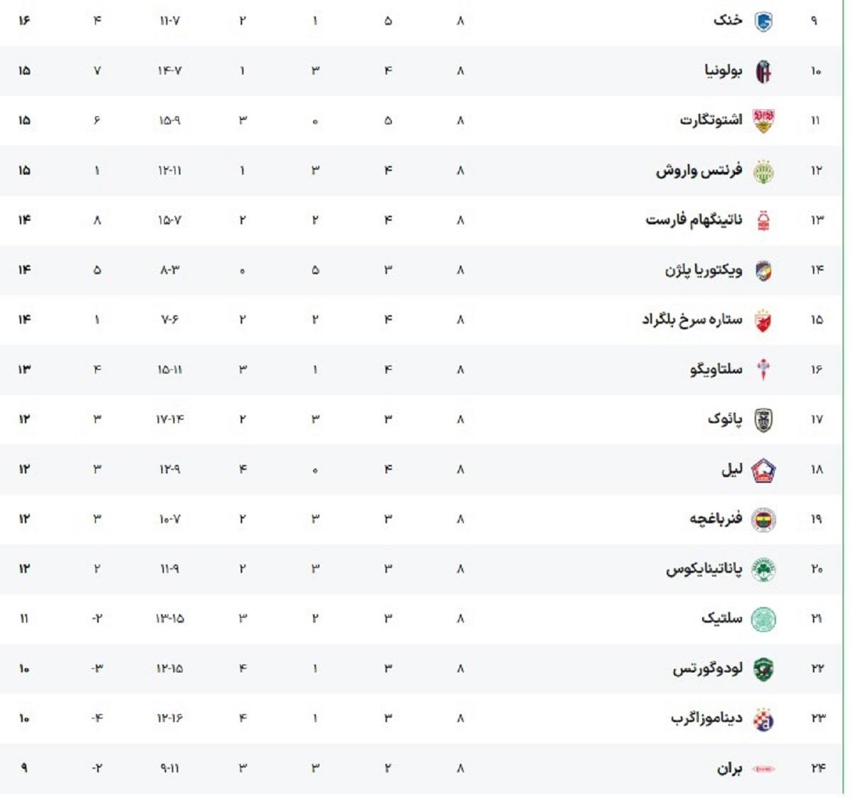 مرحله گروهی لیگ اروپا در شب نفسگیری به پایان رسید. با پایان ۱۸ بازی همزمان، تکلیف تیمهای صعودکننده به مراحل حذفی مشخص شد. در فرمت جدید این رقابتها، ۳۶ تیم برای رسیدن به مرحله یکهشتم نهایی رقابت کردند. حالا ۸ تیم برتر، بدون دردسر مستقیم راهی این مرحله شدهاند. ۱۶ تیم دیگر نیز باید خود را برای مرحله پلیآف آماده کنند. این تیمها در دو سید جداگانه قرار گرفتهاند تا برای ۸ سهمیه باقیمانده بجنگند. تیمهای بزرگی مانند رم، استون ویلا و پورتو از جمله خوششانسهایی هستند که از پلیآف معاف شدند. این تیمها میتوانند تا اسفندماه استراحت کنند.