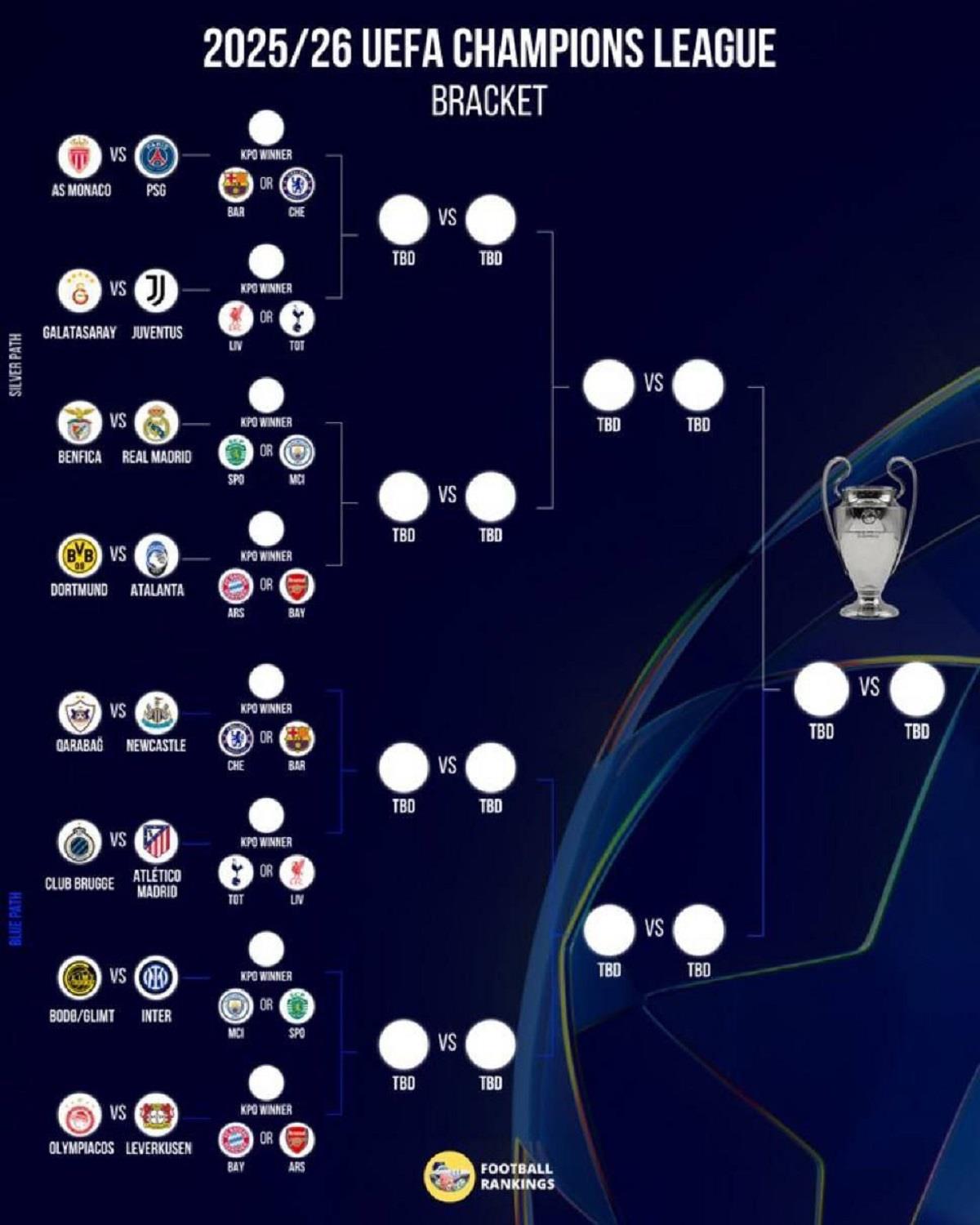 برندگان این ۸ حریف، جواز ورود به مرحله یکهشتم نهایی را کسب میکنند و در آنجا در انتظار ۸ تیم صعودکننده مستقیم—از جمله غولهایی مانند منچستر سیتی، بایرن مونیخ، لیورپول و بارسلونا—خواهند بود. این گزارش به تحلیل دقیق تمامی این تقابلها، پیشبینی نتایج و بررسی مسیر احتمالی تیمها در صورت صعود به مرحله بعد میپردازد.