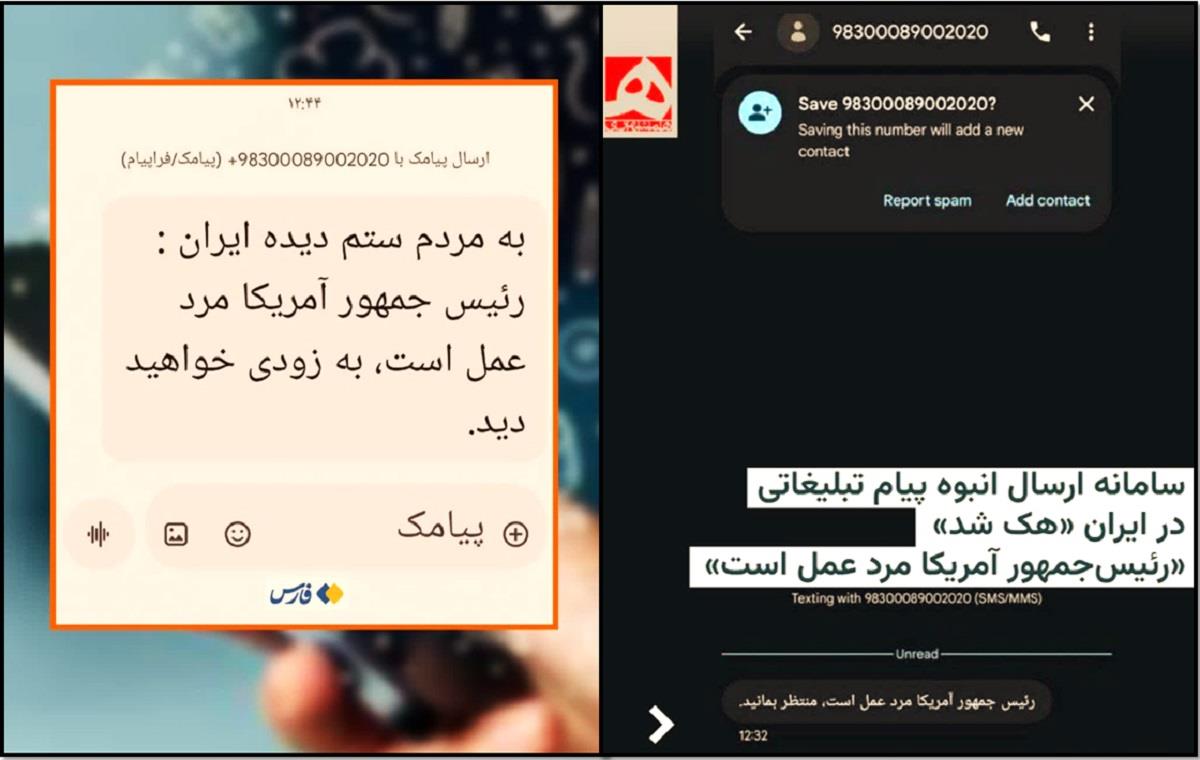 به گزارش همشهری آنلاین و خبرگزاری فارس، دوشنبه ۲۳ فوریه ۲۰۲۶ (۴ اسفند ۱۴۰۴)، هزاران شهروند ایرانی در سراسر کشور با یک اتفاق غیرمنتظره و نگرانکننده مواجه شدند. پیامکی ناشناس از یک شماره ناشناخته برای آنها ارسال شده بود که متن آن به فارسی نوشته شده بود: «رئیسجمهور آمریکا مرد عمل است. صبر کنید و ببینید.» این پیامک که در ساعات ابتدایی روز دوشنبه برای شهروندان در نقاط مختلف کشور ارسال شد، واکنشهای گستردهای را در شبکههای اجتماعی و رسانهها به همراه داشت. کاربران با انتشار تصاویر این پیامک، به دنبال پاسخ به این پرسش بودند که چه کسی و با چه هدفی چنین پیامی را ارسال کرده است. ساعاتی پس از انتشار این خبر در شبکههای اجتماعی، خبرگزاری فارس که نزدیک به سپاه پاسداران است، این خبر را تأیید کرد. بر اساس گزارش این رسانه، یکی از سامانههای ارسال انبوه پیام تبلیغاتی در کشور هک شده و عامل یا عواملی ناشناس از آن برای ارسال این پیام به ۵۰ هزار شماره موبایل استفاده کردهاند. فارس در گزارش خود به عامل هک این سامانه و شرکتی که این سامانه متعلق به آن است اشاره نکرده است. متن پیامک ارسالی نیز به گزارش این رسانه «به مردم ستمدیده ایران، رئیس جمهور آمریکا مرد عمل است، بهزودی خواهید دید» بوده است.