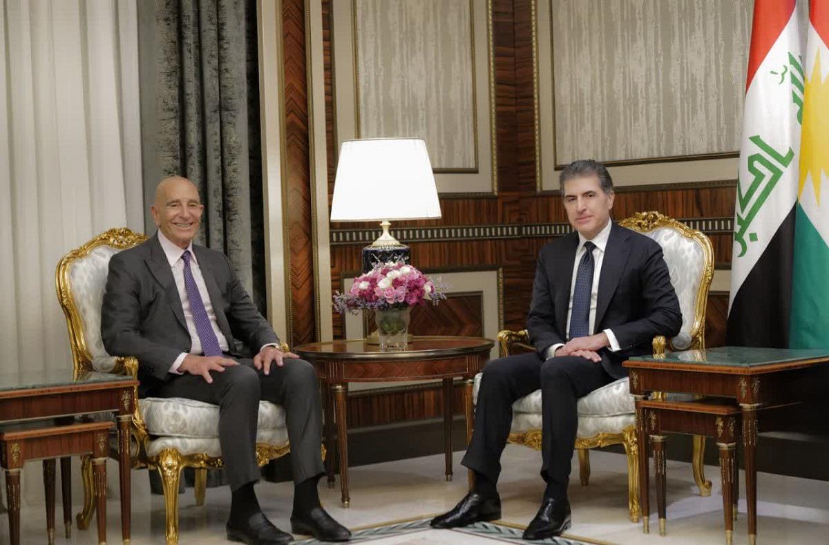 منصور جهانی - «نیچیروان بارزانی» رئیس اقلیم کُردستان عراق و «توماس باراک» فرستاده ویژه «دونالد ترامپ» رئیس جمهور آمریکا در امور سوریه و سفیر آمریکا در ترکیه، وضعیت سیاسی در عراق و اقلیم کُردستان را بررسی کردند. «نیچیروان ادریس بارزانی» رئیس اقلیم کُردستان عراق، در واپسین ساعات روز دوشنبه 4 اسفند ماه جاری (23 فوریه 2026) از «توماس باراک» Tom Barrack فرستاده ویژه «دونالد ترامپ» رئیس جمهور آمریکا در امور سوریه و سفیر آمریکا در ترکیه و هیأت همراه استقبال کرد و در دیداری که «جاشوا هریس» Joshua Harris کاردار سفارت آمریکا در عراق نیز حضور داشت؛ طرفین روابط آمریکا با عراق و اقلیم کُردستان، آخرین اتفاقات سوریه و همچنین وضعیت سیاسی در عراق و اقلیم کُردستان را مورد بررسی و تبادل نظر قرار دادند.