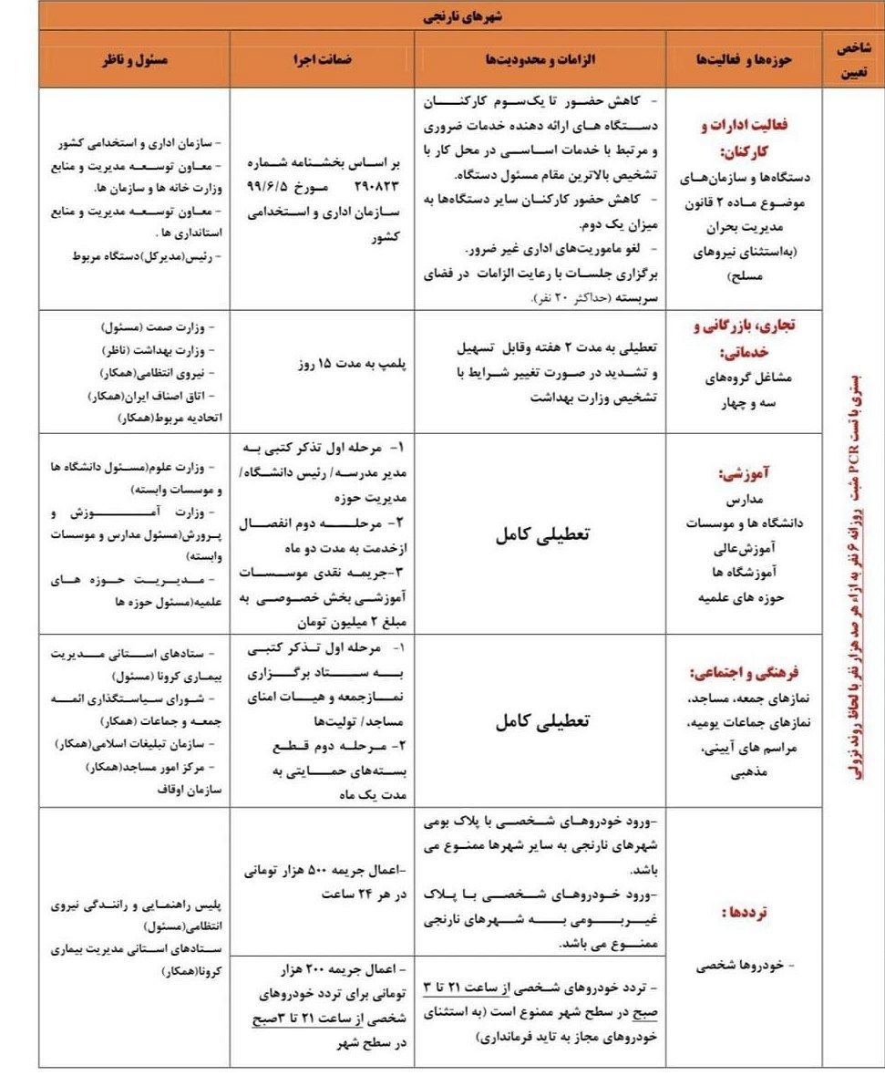 فهرست مشاغلی که از امروز در شهرهای قرمز و نارنجی مشمول محدودیت ها هستند به این شرح است :