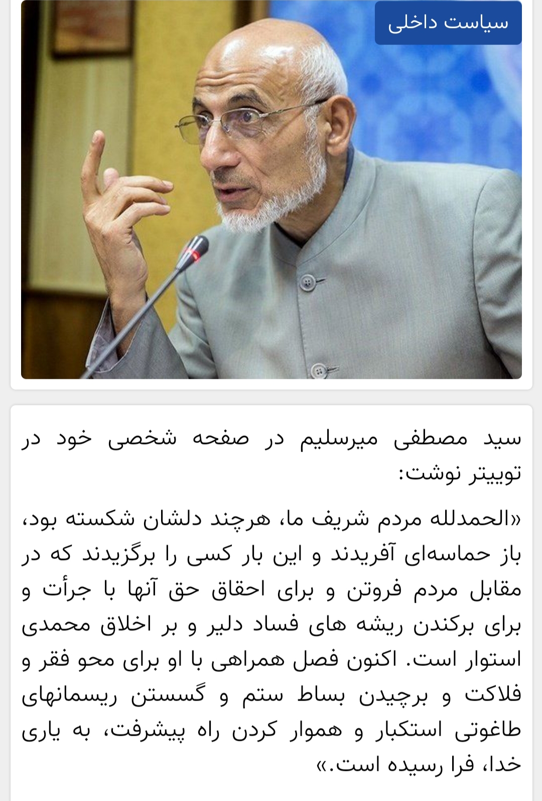 توییت جدید میرسلیم درباره رئیس جمهور منتخب