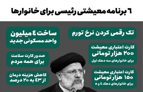 رئیسجمهور دولت سیزدهم که از یک ماه آینده کار خود را در پاستور آغاز میکند شش برنامه معیشتی برای کاهش هزینههای خانوار دارد.