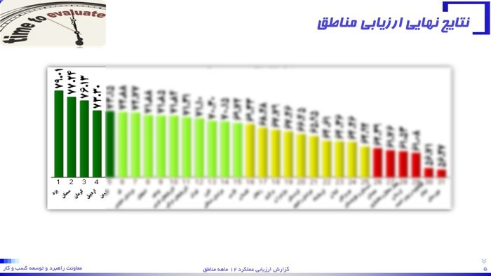 این ارزیابی ها که به منظور بررسی عملکرد مخابراتی مناطق در شاخص هایی چون ارتباطات