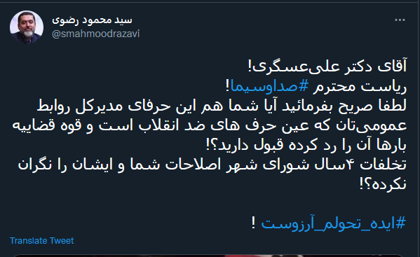 توییت سید محمود رضوی درباره اظهارنظر رنجبران در برنامه دستخط