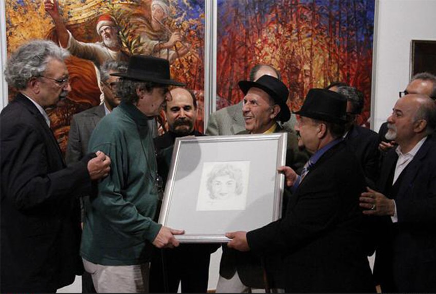 در پایان مراسم اثر طراحی شده توسط زندهیاد جمشید مشایخی از سوی حجت شکیبا به نادر مشایخی تقدیم شد.
