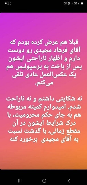 آذری جهرمی با انتشار یک استوری در اینستاگرام با بیان اینکه شکایتی از مجیدی نکرده است، از کمیته اخلاق خواست نسبت جریمه به سرمربی استقلال گذشت کنند: