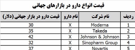 مثال : شرکت بایر تولید کننده دارو است و واحد تحقیقات بازار شرکت بایر بعد از بررسی قیمت داروی X موجود در بازار ، به قیمتهای زیر دست یافته است .
