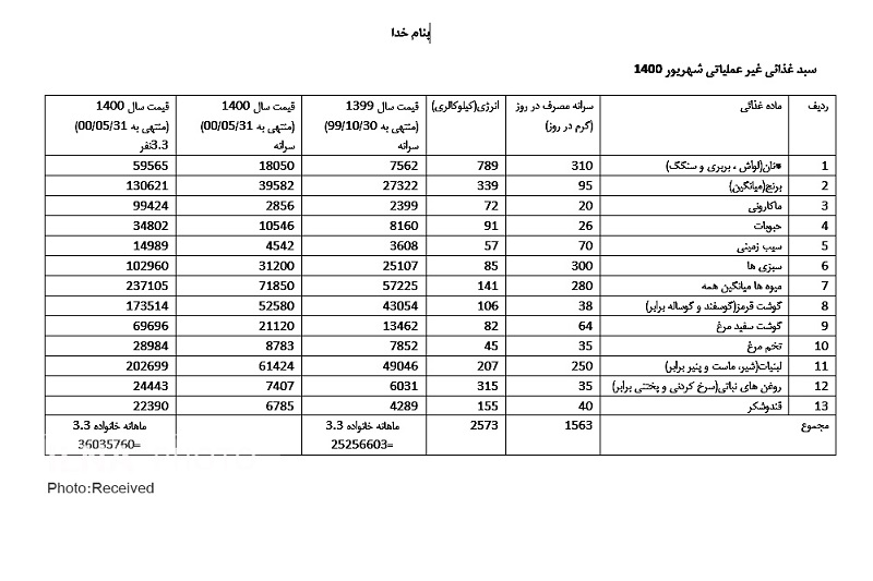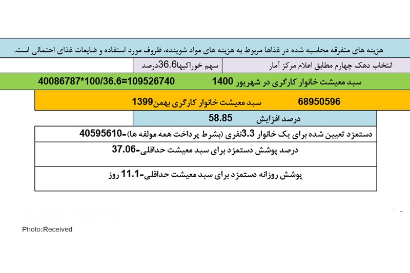 ترمیم دستمزد کارگران asianews با استناد به این محاسبات، سبد معیشت به صورت زیر محاسبه می‌شود: