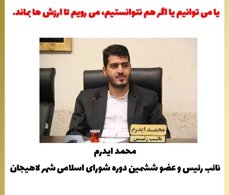 ایدرم که از قضا بدون هیچ سبقه ی سیاسی ، اجتماعی ، فرهنگی و دارا بودن رزومه ای جهت ارائه به افکار عمومی به یکباره در جایگاه عضو شورای اسلامی شهر لاهیجان قرار گرفته ، این روز ها به گونه ای سخن می گوید که سالها برای مبارزه با فساد سیستماتیک در شورا و شهرداری لاهیجان تلاش نموده و امروز که با پشتیبانی مردم در این جایگاه حاضر شده ، فریاد شفافیت سر می دهد . !