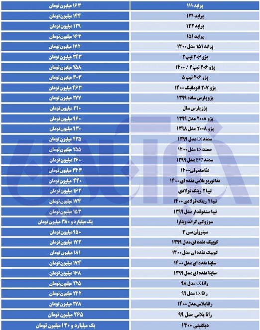 جدیدترین لیست قیمت خودروها اعلام شد+جدول asianews