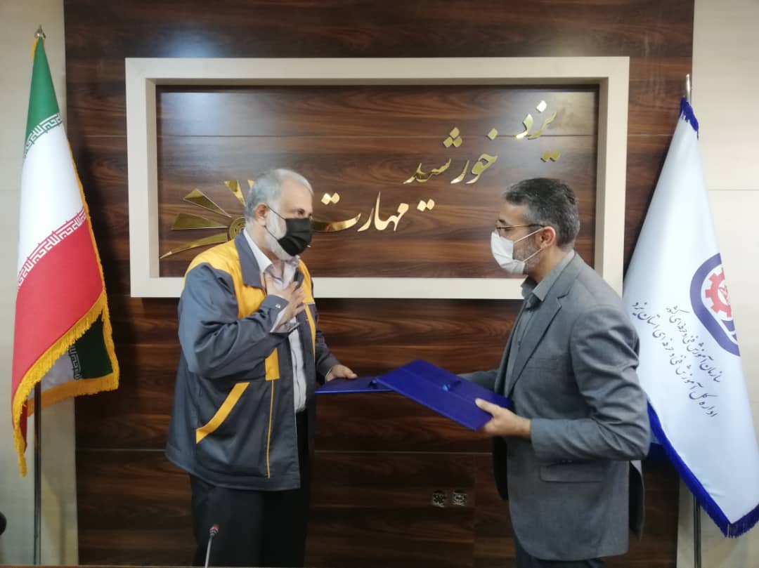 تنفیذ تفاهم نامه همکاری بین اداره کل تعزیرات حکومتی و اداره کل آموزش فنی و حرفه ای استان یزد , مصباح مدیرکل آموزش و فنی حرفه ای استان یزد , علی اکبر مختاری مدیرکل تعزیرات خکومتی استان یزد, سید محمد جواد عرفانفر