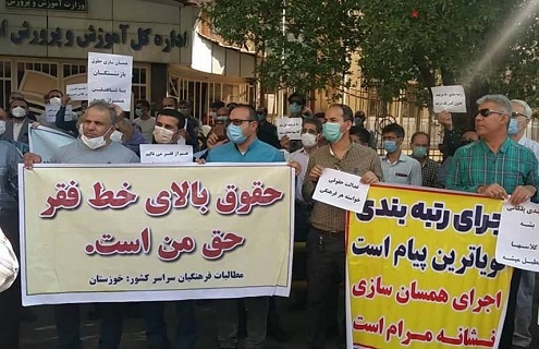 در همین ارتباط، معلمان ایرانی در روزهای ۲۱ و ۲۲ آذر در دهها شهر اعتراضات گستردهای را در اعتراض به عدم اجرای «طرح رتبهبندی» و «قانون همسانسازی حقوق» برگزار کردند که تجمع معلمان تهران در مقابل مجلس با حمله نیروهای امنیتی و بازداشت برخی معلمان نیز مواجه شد.