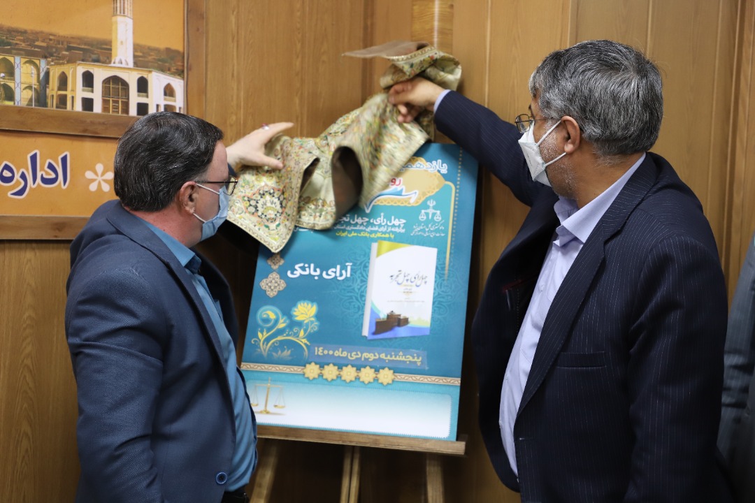 مراسم رونمایی از جلد ششم کتاب«چهل رای، چل تجربه» با حضور رئیس کل دادگستری استان، رئیس امور شعب بانک ملی استان و جمعی از مسئولان عالی قضائی استان، تعدادی از قضات صادر کننده به میزبانی بانک ملی برگزار شد.