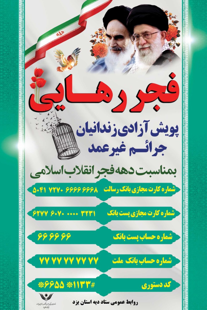 آسیا نیوز / یزد ؛ به گزارش روابط عمومی ستاد دیه استان یزد ؛ سید مسعود عظیمی مدیر نمایندگی ستاد دیه استان یزد ضمن تبریک به مناسبت فرا رسیدن دهه فجر انقلاب اسلامی از آغاز پویش " فجر رهایی " ویژه آزادی زندانیان جرائم غیر عمد محکوم مالی خبر داد .
