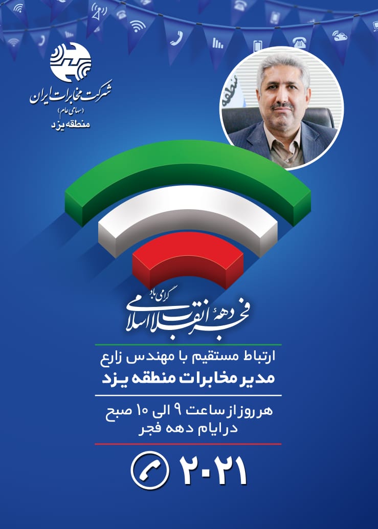 بر همین اساس شهروندان گرامی می توانند در ایام ا.. دهه فجر از ساعت 9 الی 10صبح از طریق تماس با شماره 2021 مسائل و مشکلات ارتباطی خود را با مدیر مخابرات منطقه یزد مطرح و به صورت مستقیم پاسخ خود را دریافت کنند.