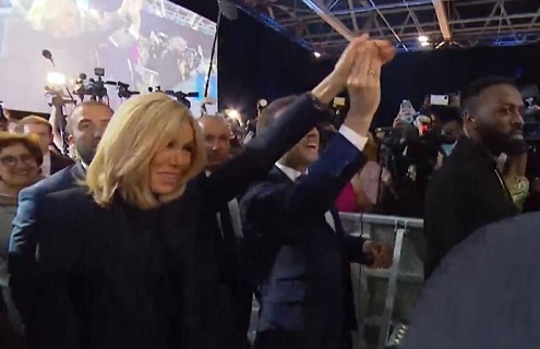 این در حالی است که پس از اعلام نتایج دور نخست انتخابات، مانوئل مکرون، برنده نخستین دور انتخابات ریاستجمهوری فرانسه و همسر باوقار موطلاییاش، بریژیت دست در دست قدم به مراسم پیروزی در انتخابات گذاشتند و روی صحنه یکدیگر را در آغوش کشیدند و بوسیدند.