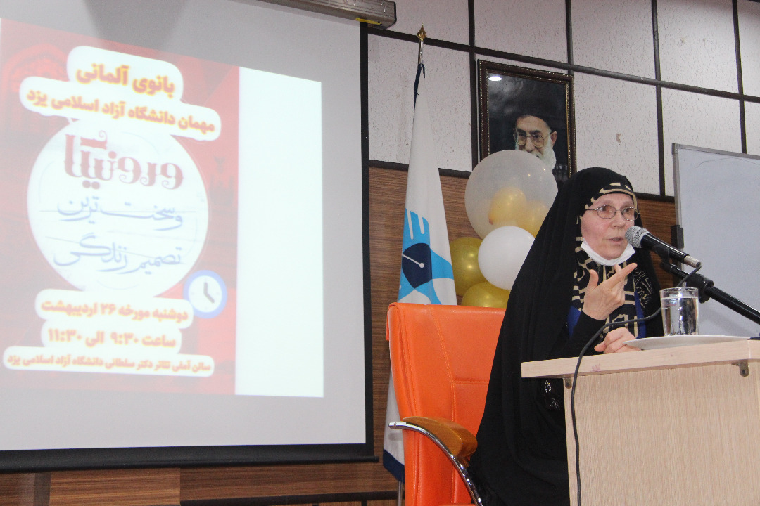 آسیانیوز / یزد ؛ به همت نهاد نمایندگی مقام معظم رهبری در دانشگاه آزاد اسلامی واحد یزد و با حضور مسئولان دانشگاهی، سخنرانی با حضورخانم مریم فاضلی (ورونیکا) بانوی تازه مسلمان شده آلمانی در جمع دانشجویان و دانشگاهیان واحد یزد در سالن آمفی تاتر دکتر سلطانی دانشگاه برگزار شد.